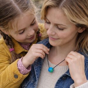 Внешне всё предельно лаконично: шарик на нитке или тонкой цепочке — простая поделка ко дню Космонавтики. Но за этой наивностью и простотой скрывается образ, который легко считывается на уровне ощущений. Шарик символизирует Землю, нить — её путь вокруг Солнца. В момент, когда такую подвеску надевают на шею, человек оказывается в центре этой маленькой модели — словно на месте светила, вокруг которого движется его собственная планета.